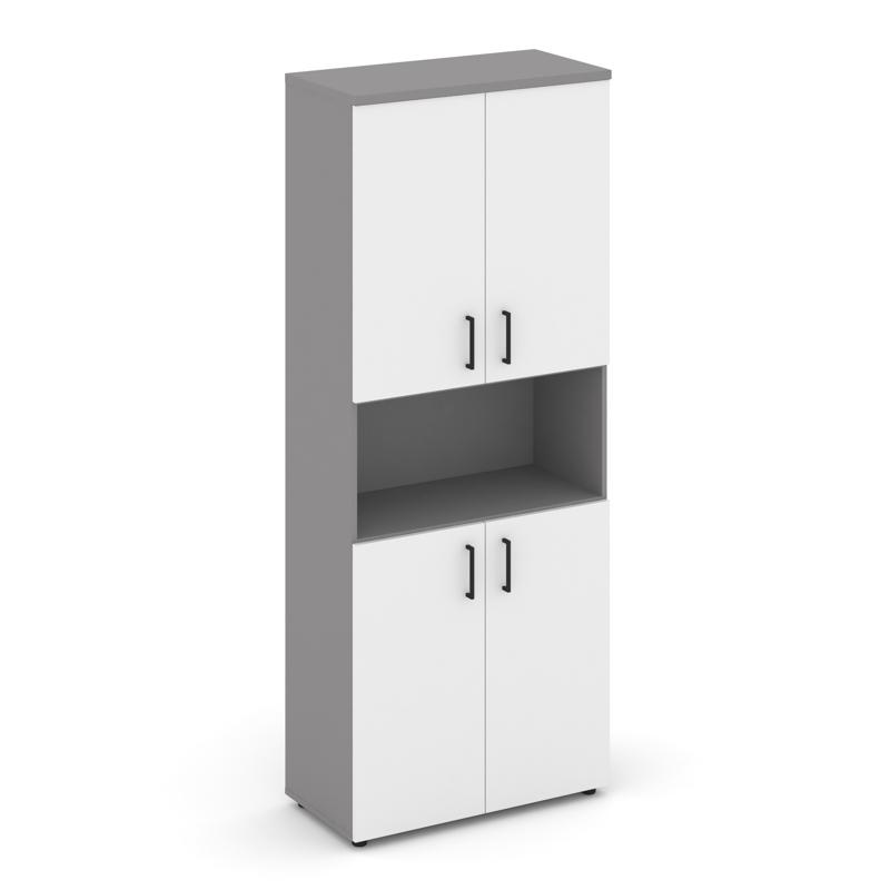 Стайл Проджект Шкаф высокий широкий (4 низких фасада ЛДСП) SN.STS.E-107 Серый Пепел/Белый/Черный Руч