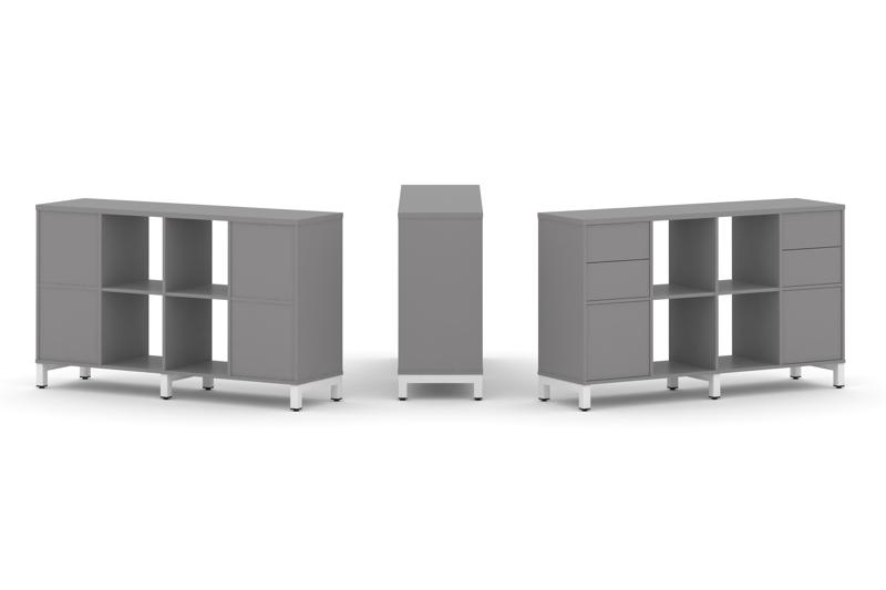 Стайл Проджект Набор стеллажа одностороннего, 2 яруса SN.NS-241 Серый Пепел/Металл Белый 1488*400*88