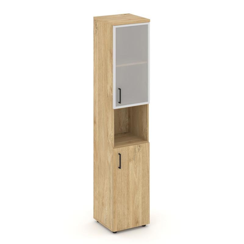 Стайл Проджект Шкаф высокий узкий SN.STU-106(R) Тиквуд Светлый/Сатин/Черный Ручки 400*400*1982