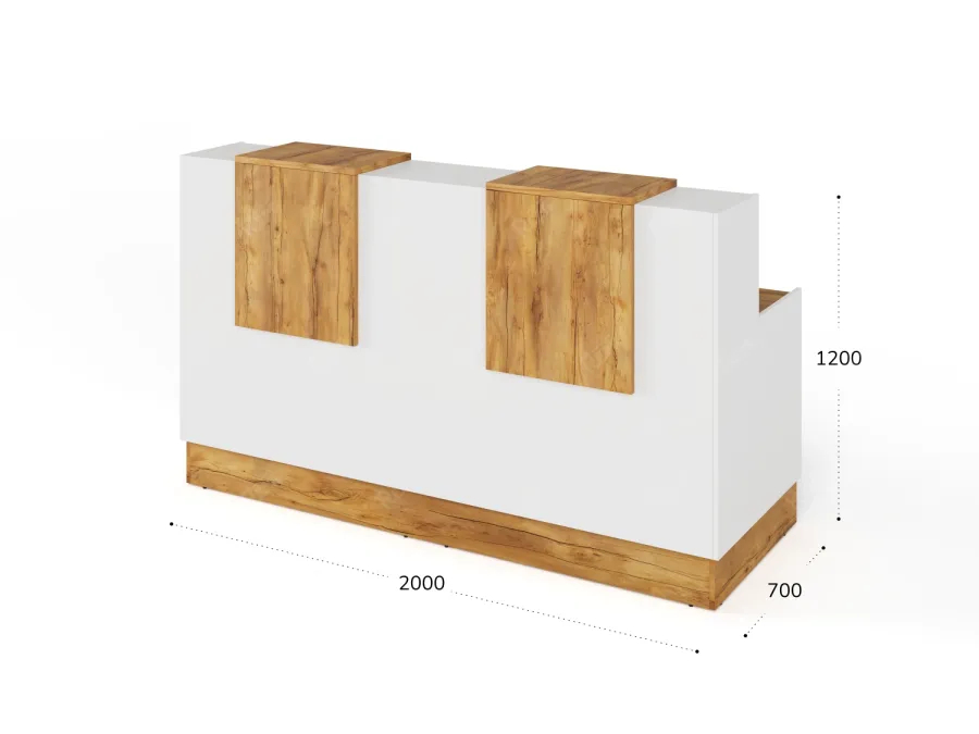 Стойка ресепшн Стойка ресепшн 2-200 ТАНДЕМ / TANDEM Таксония медовая — это стильный и продуманный элемент интерьера для зоны приёма. Габариты 2000х700х1200 и цветовая комбинация Таксония медовая TD создают визуальную привлекательность и удобство. Эта модель разработана для компаний, которые ценят эстетичность и функциональность в каждой детали.