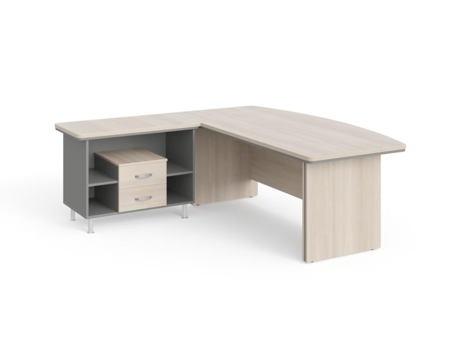 БЕРЛИН / BERLIN Стол руководителя угловой L с тумбой 2 ящика 2000х2000х760 Акация/Серый