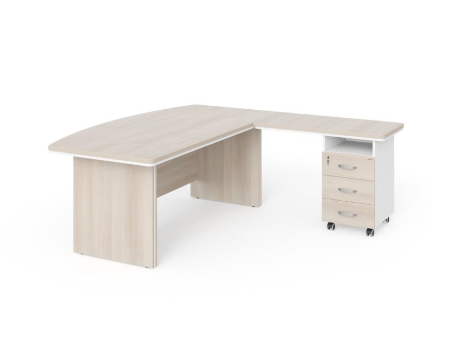 БЕРЛИН / BERLIN Стол руководителя угловой R с тумбой 3 ящика 2000х2000х760 Акация/Белый