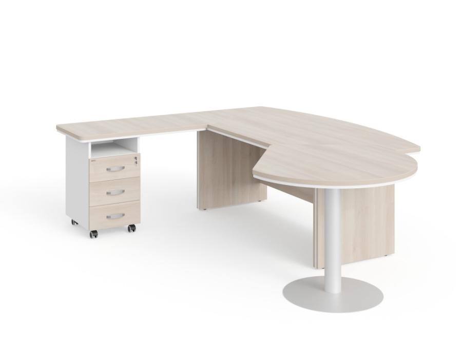 БЕРЛИН / BERLIN Стол руководителя L угловой с брифингом и тумбой 3 ящика 2150х2000х760 Акация/Белый