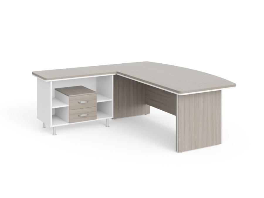 БЕРЛИН / BERLIN Стол руководителя угловой L с тумбой 2 ящика 2000х2000х760 Дрифтвуд/Белый