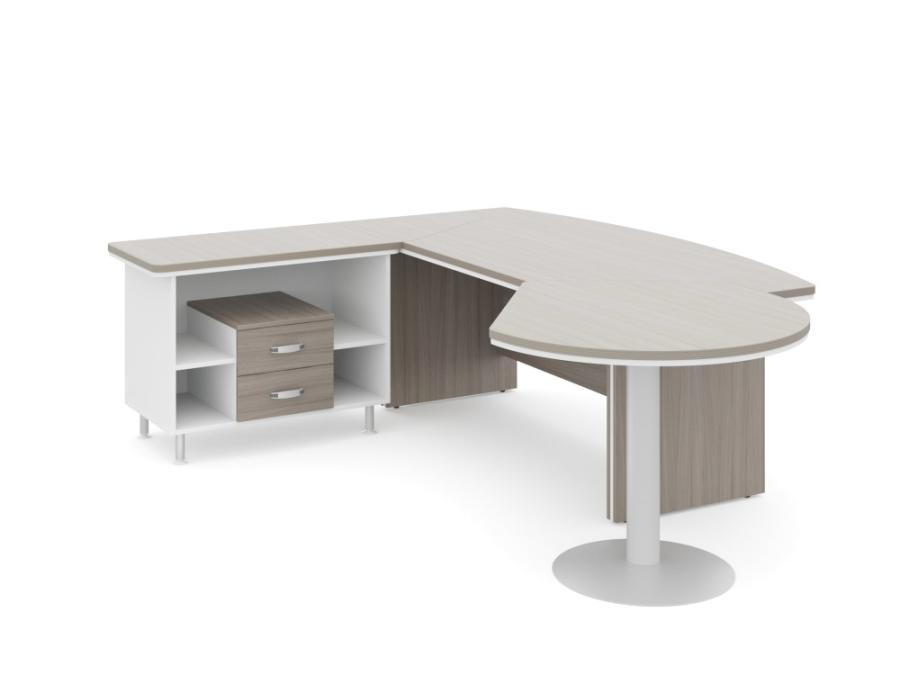 БЕРЛИН / BERLIN Стол руководителя L угловой с брифингом и тумбой 2 ящика 2350х2000х760 Дрифтвуд/Белый