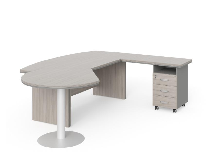 БЕРЛИН / BERLIN Стол руководителя R угловой с брифингом и тумбой 3 ящика 2150х2000х760 Дрифтвуд/Серый
