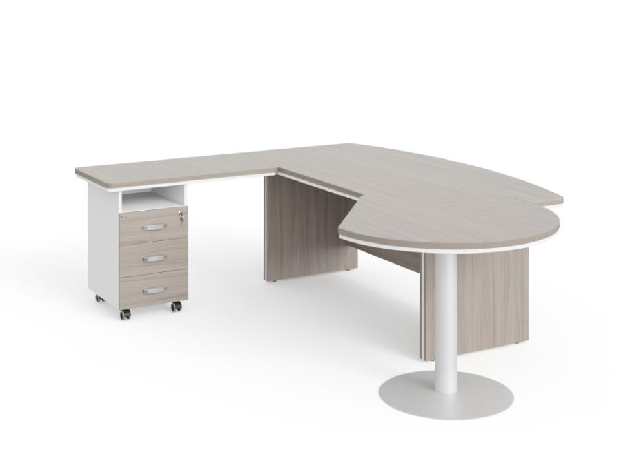 БЕРЛИН / BERLIN Стол руководителя L угловой с брифингом и тумбой 3 ящика 2550х2000х760 Дрифтвуд/Белый