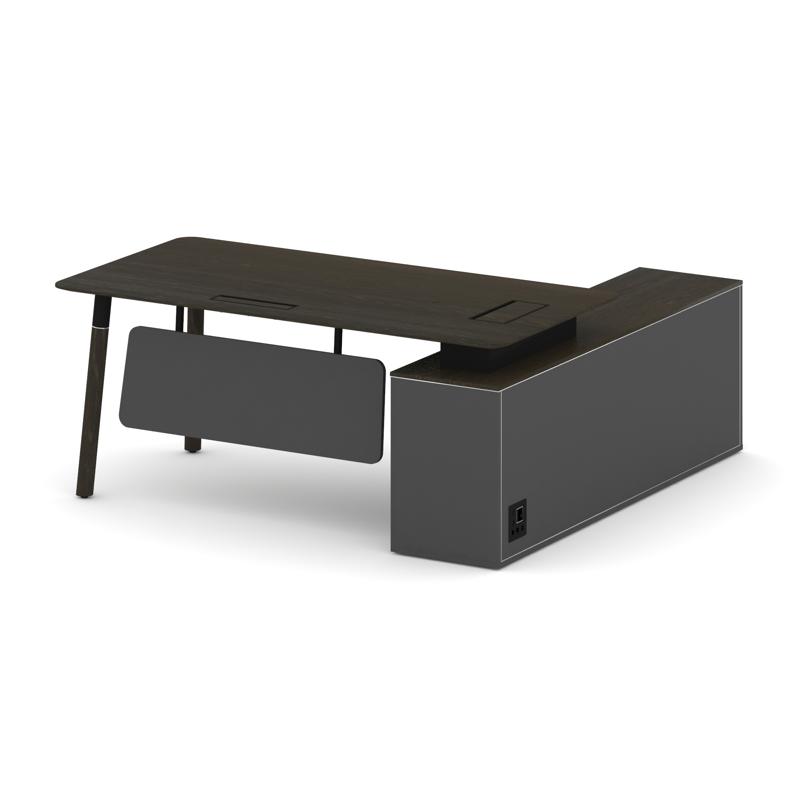 Fresco Стол руководителя FR.SR-18 (L) Дуб Темный/Базальт UM/Металл Черный/Нерж. Сталь 1800*1798*750
