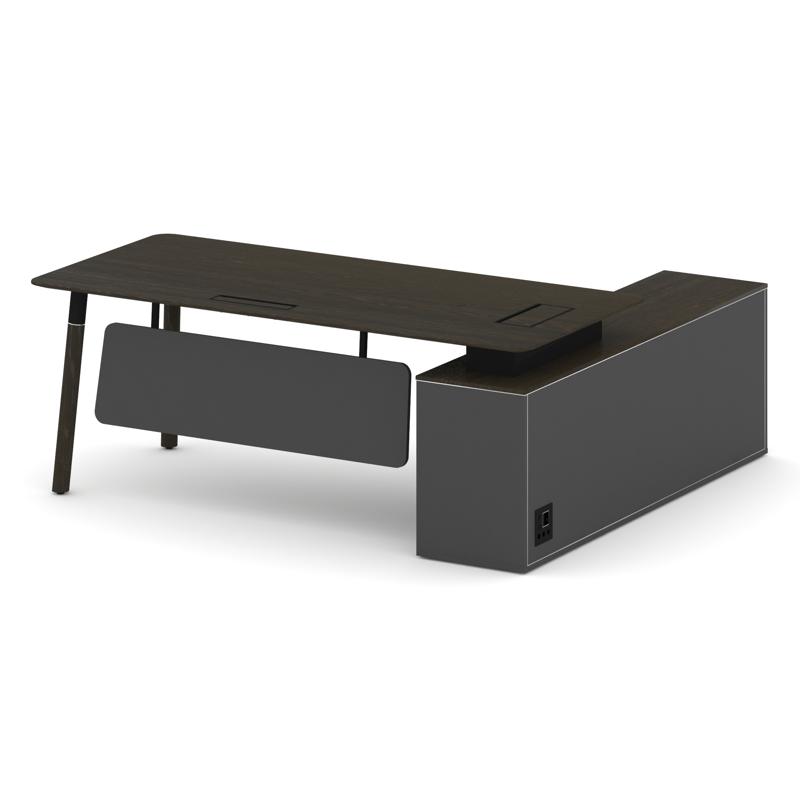 Fresco Стол руководителя FR.SR-20 (L) Дуб Темный/Базальт UM/Металл Черный/Нерж. Сталь 2000*1798*750