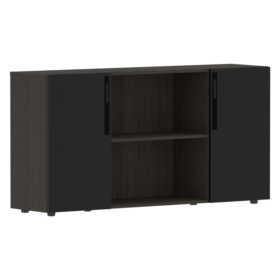 Шкаф с двумя дверями и открытой полкой СП-064-25-22 Черный глянец/Дуб Мореный 1600х450х800 KANON