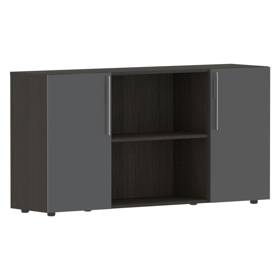 Шкаф с двумя дверями и открытой полкой СП-064-25-22 Серый глянец/Дуб Мореный 1600х450х800 KANON