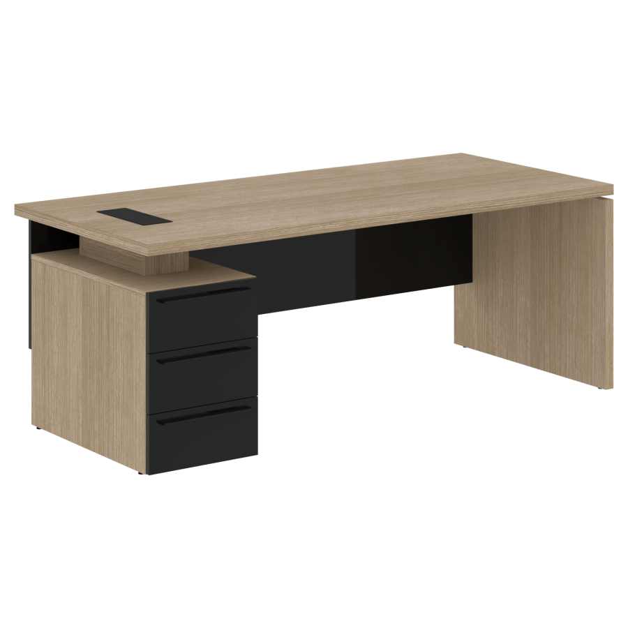 Стол письменный СП-064-25-05(L) Дуб Натуральный/Черный глянец 2000х900х750 KANON