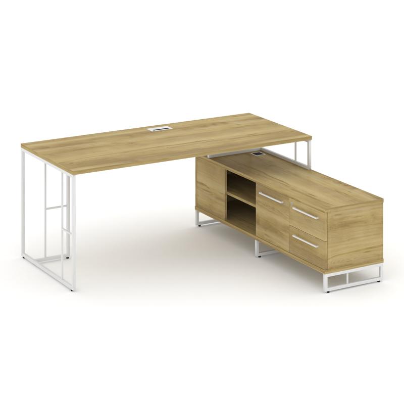 Rift Direct Стол руководителя на опорной тумбой RF.SRT-25 (R) Дуб Винченцо/Металл Белый 1780*1600*750