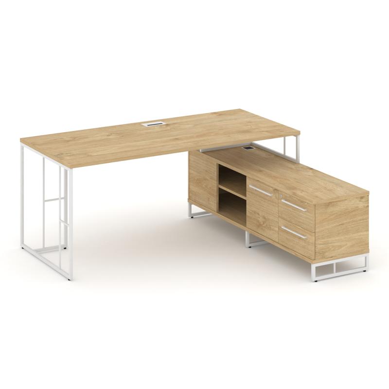 Rift Direct Стол руководителя на опорной тумбой RF.SRT-24 (R) Тиквуд Светлый/Металл Белый 1580*1600*750