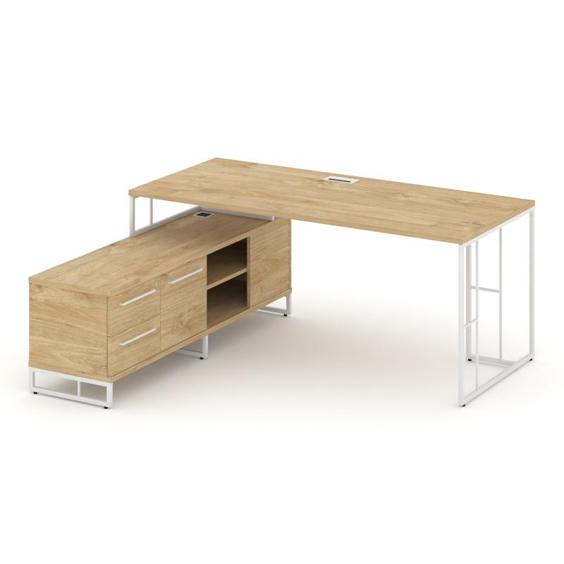 Rift Direct Стол руководителя на опорной тумбой RF.SRT-25 (L) Тиквуд Светлый/Металл Белый 1780*1600*750