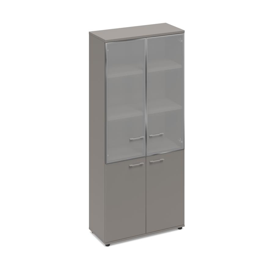 • Шкаф укомплектован двумя стеклянными дверями в алюминиевой рамке и двумя дверями из ЛДСтП без замков