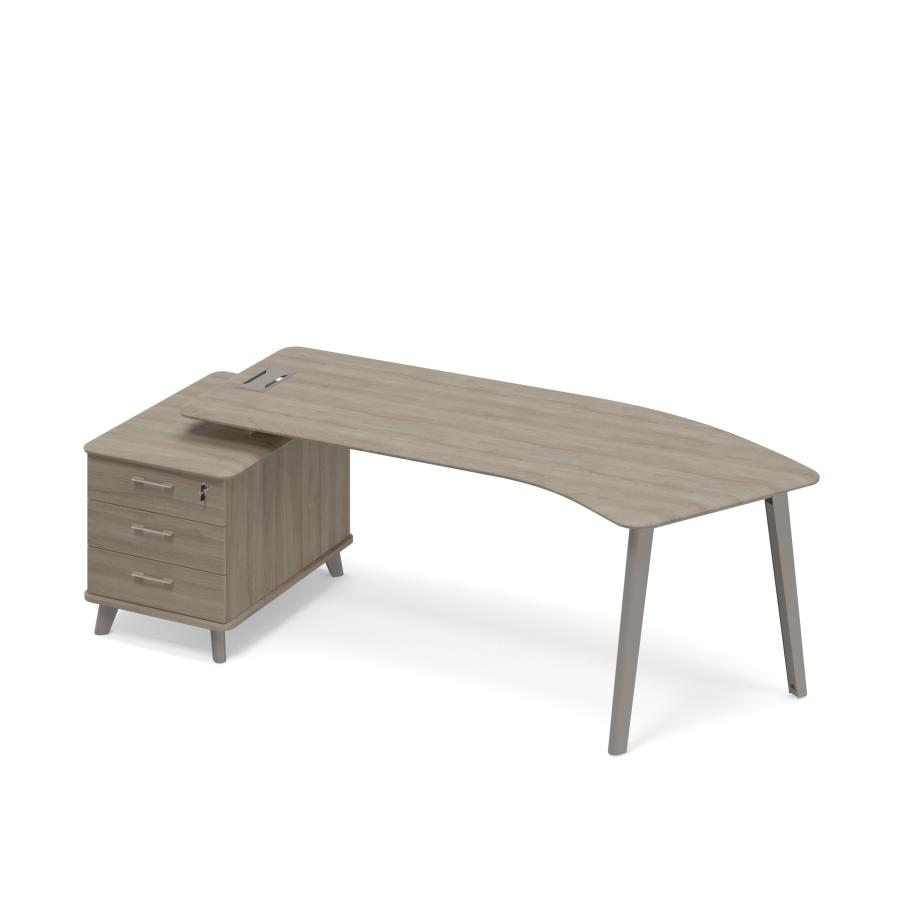 Стол руководителя левый эргономичный на тумбе малой тип 5 Time metal ТМ М1 131 МП ВЛ ВЛ вяз либерти