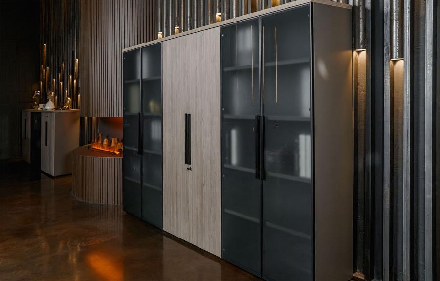 Шкаф комбинированный средний (закрытый-стекло-закрытый) U.RUS РС 309 ДЧ/ЛС дуб виченца/лава серая