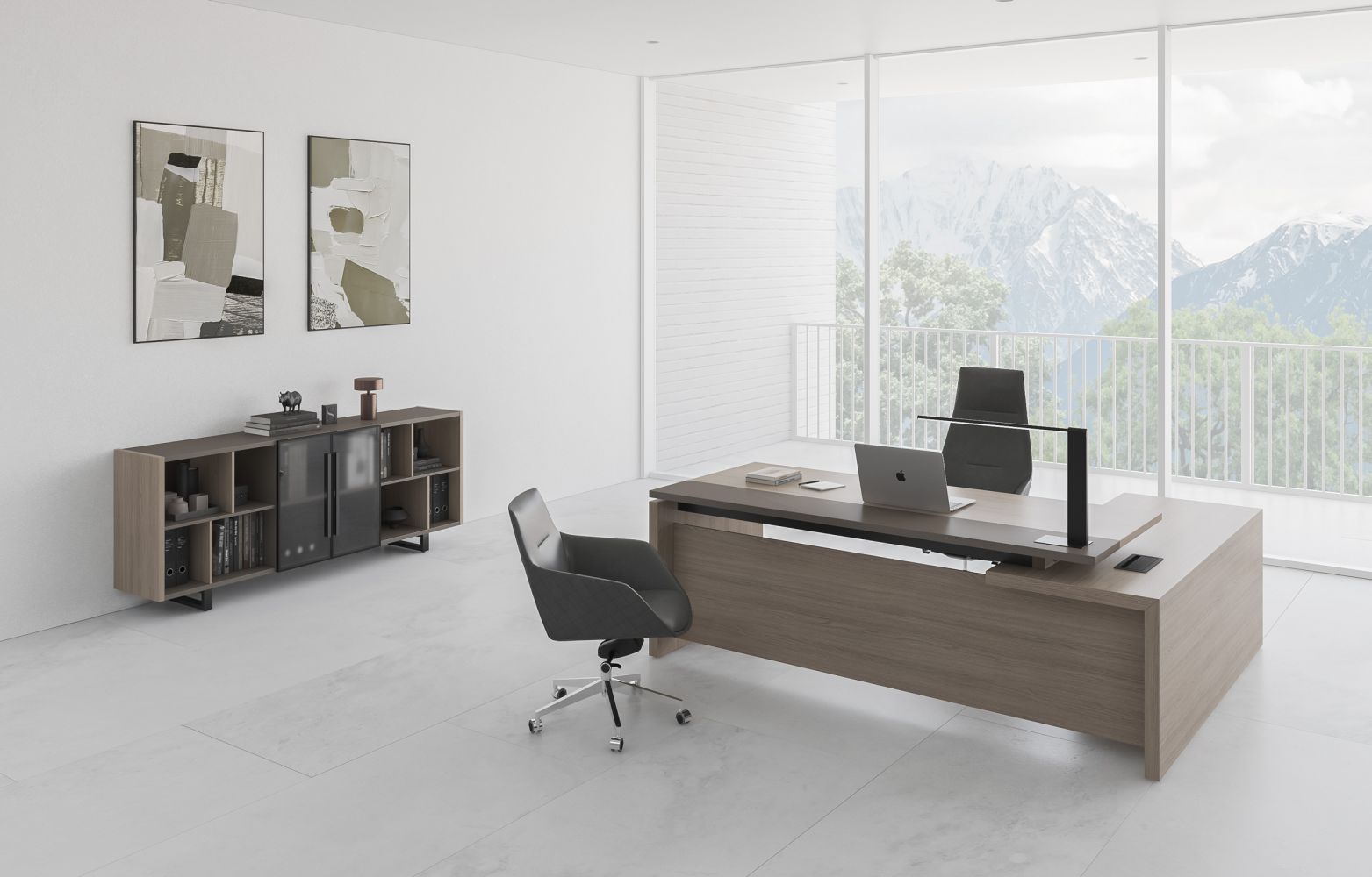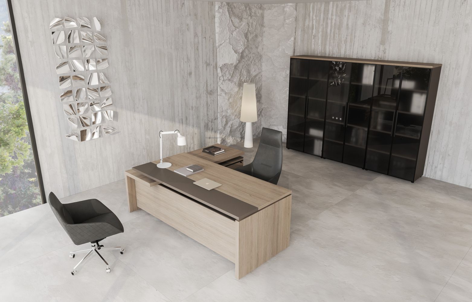 Стол руководителя левый U.RUS РС 101 ДЧ/ЛС дуб виченца/лава серая