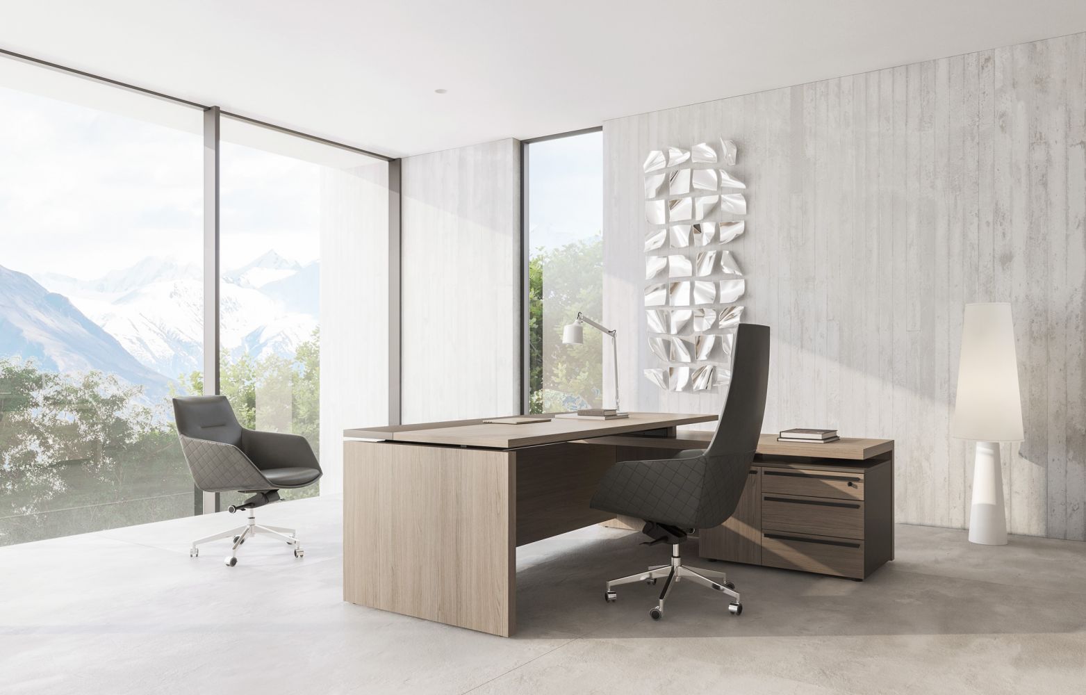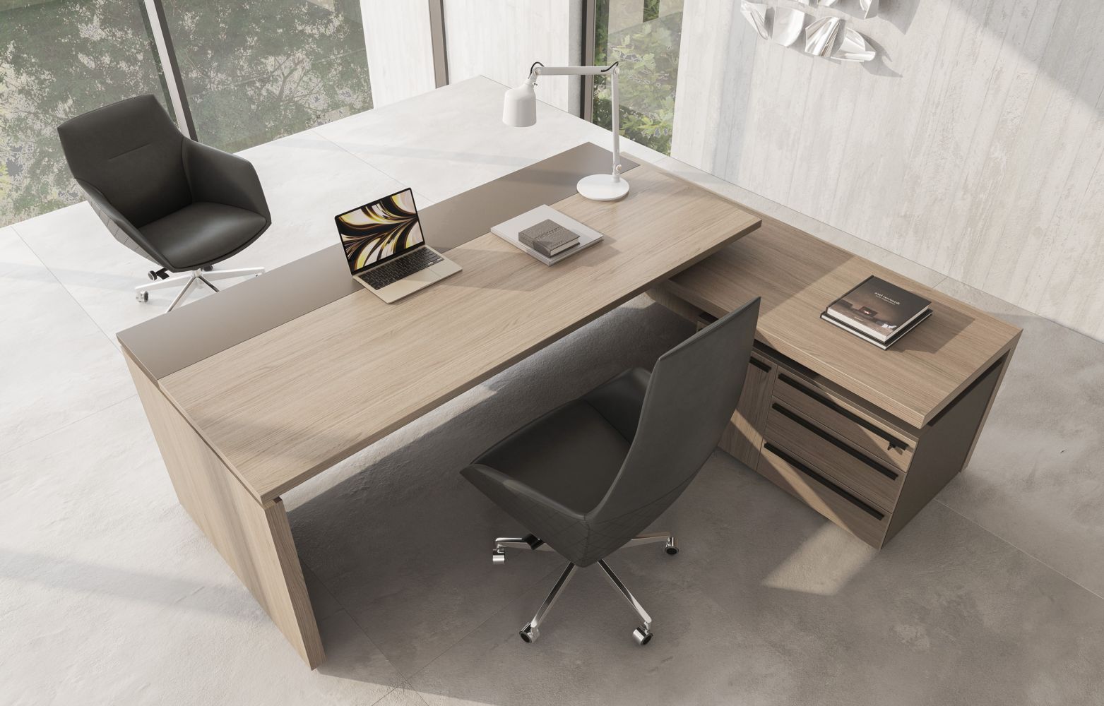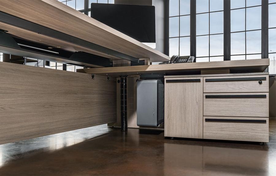 Стол руководителя с тумбой подвесной 2-ящичной с замком правый U.RUS РС 110 ДЧ/ЛС дуб виченца/лава серая
