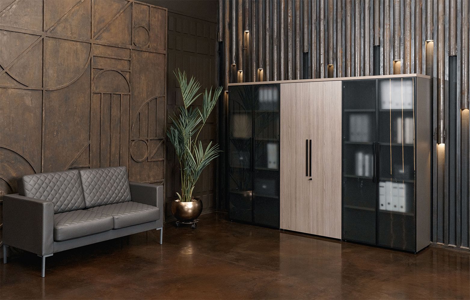 Шкаф для документов низкий закрытый (стенка из 3 шкафов) U.RUS РС 303 ДЧ/ЛС дуб виченца/лава серая