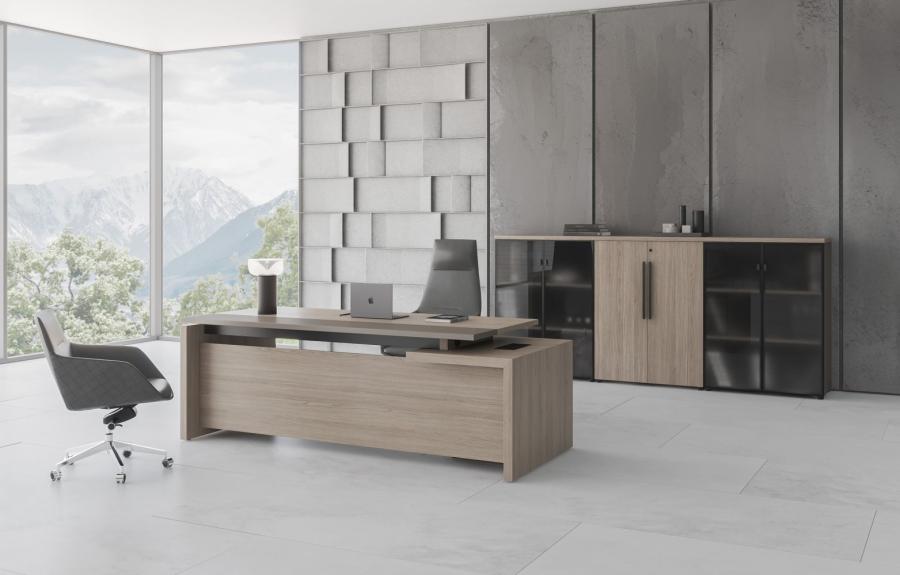 Стол руководителя с тумбой 3-ящичной с замком правый U.RUS РС 118 ДЧ/ЛС дуб виченца/лава серая
