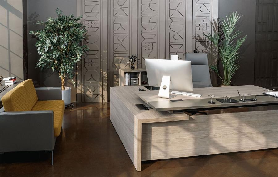 Стол руководителя с кабель-каналами правый U.RUS РС 0106 ДЧ/ЛС дуб виченца/лава серая