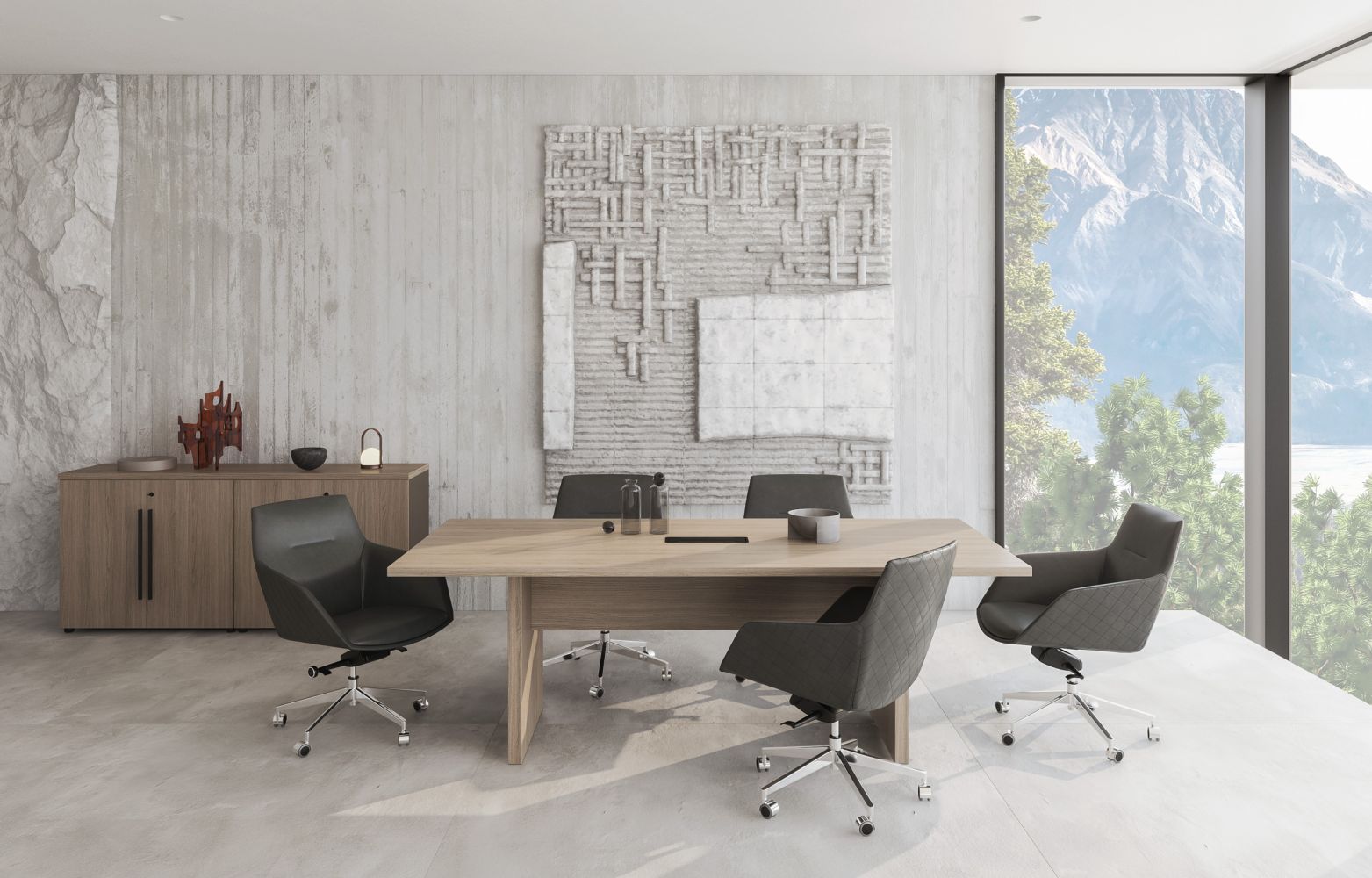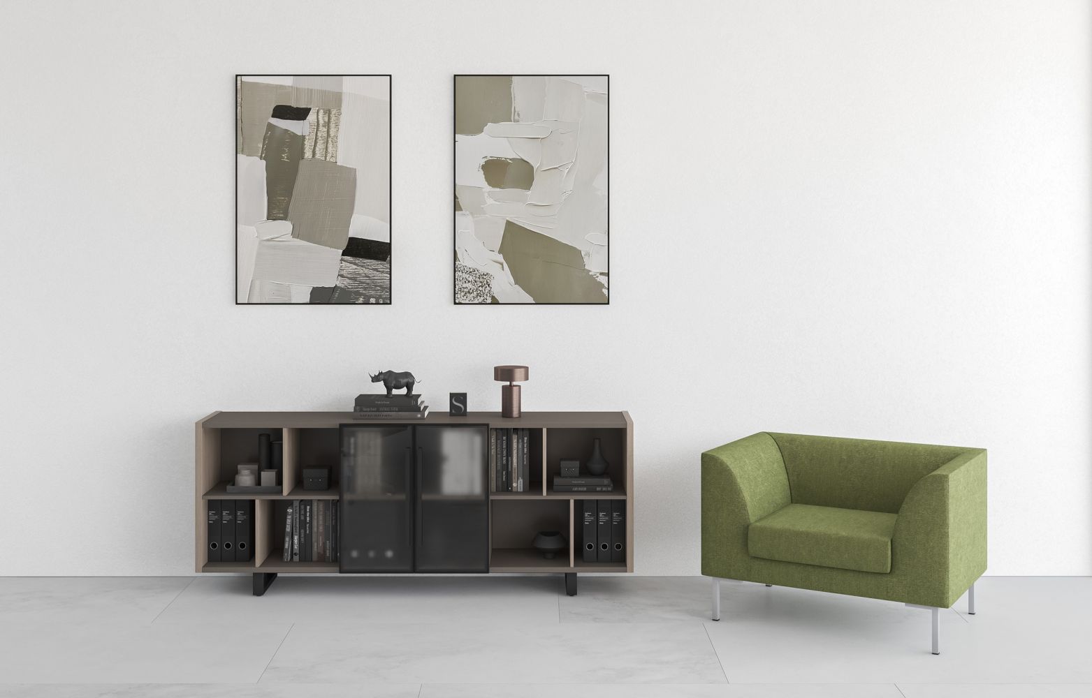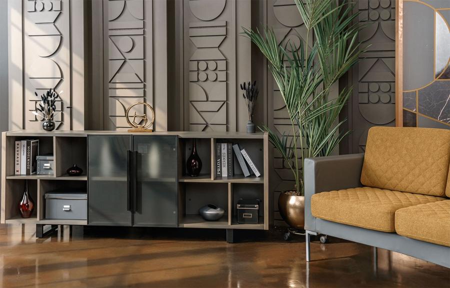 Шкаф низкий полузакрытый греденция со стеклянными дверями в рамке U.RUS РС 333 ДЧ/ЛС дуб виченца/лава серая