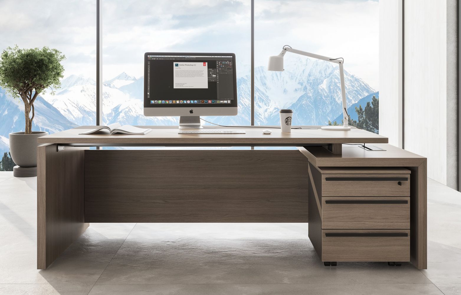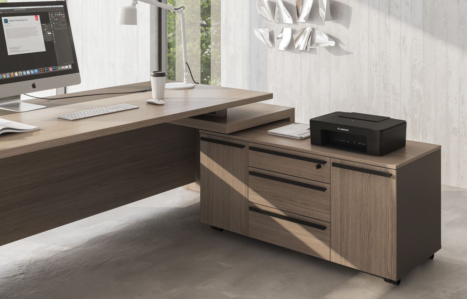 Стол руководителя с тумбой 3-ящичной с замком левый U.RUS РС 117 ДЧ/ЛС дуб виченца/лава серая