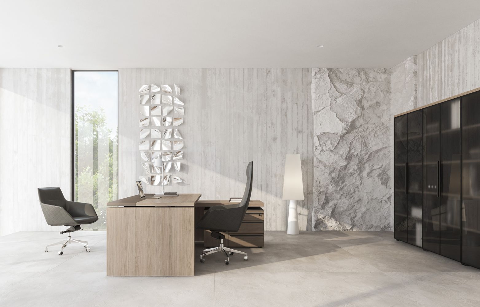 Стол руководителя с тумбой 3-ящичной с замком левый U.RUS РС 119 ДЧ/ЛС дуб виченца/лава серая