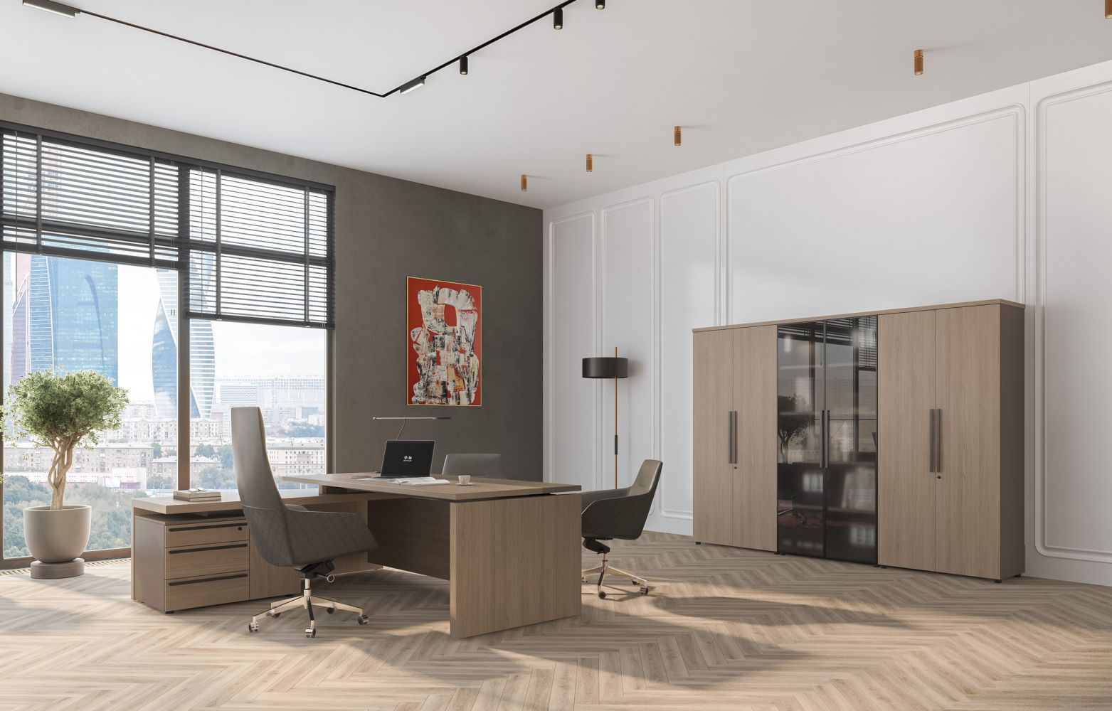 Шкаф для документов закрытый средний (стенка из 3 шкафов) U.RUS РС 308 ДЧ/ЛС дуб виченца/лава серая