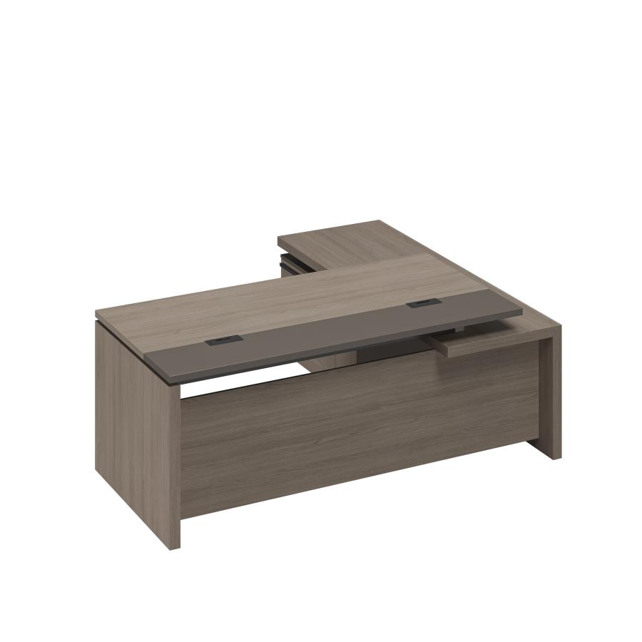Стол руководителя с кабель-каналами с брифинг-приставкой боковой левый U.RUS РС 129 ДЧ/ЛС дуб виченца/лава серая