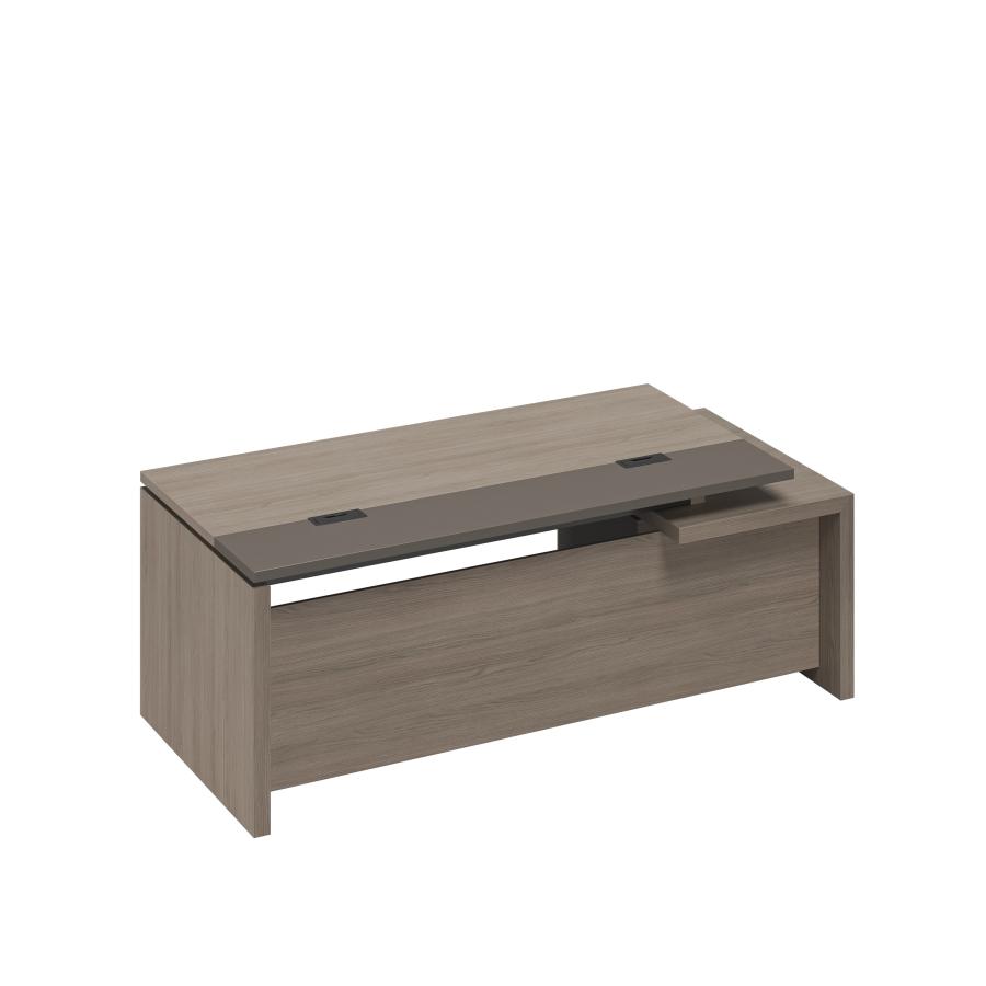 • Столешница с прямой, малой и L-образной опорами образует жесткую конструкцию при помощи траверсы и металлического лотка.