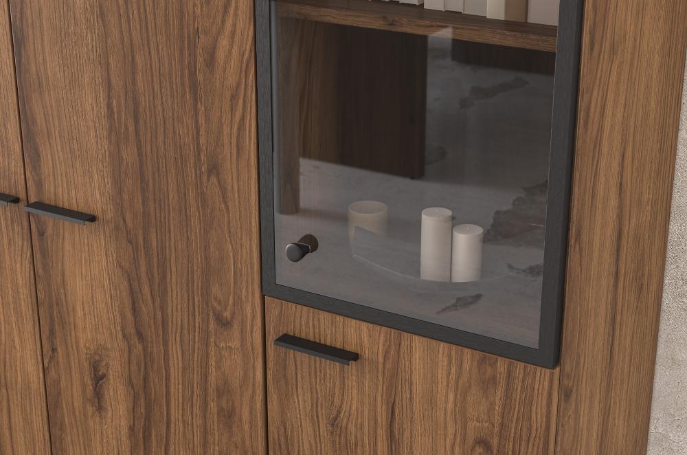 Столешница из ЛДСП 41 мм в форме “крыла” в кромке ПВХ 2 мм. Опоры из ЛДСП 41 мм в кромке ПВХ 2 мм по вертикальным торцам. Передняя панель состоит из двух поверхностей с разнонаправленной текстурой из ЛДСП 16 мм. Видимые вертикальные торцы накладки в кромке ПВХ 2мм.