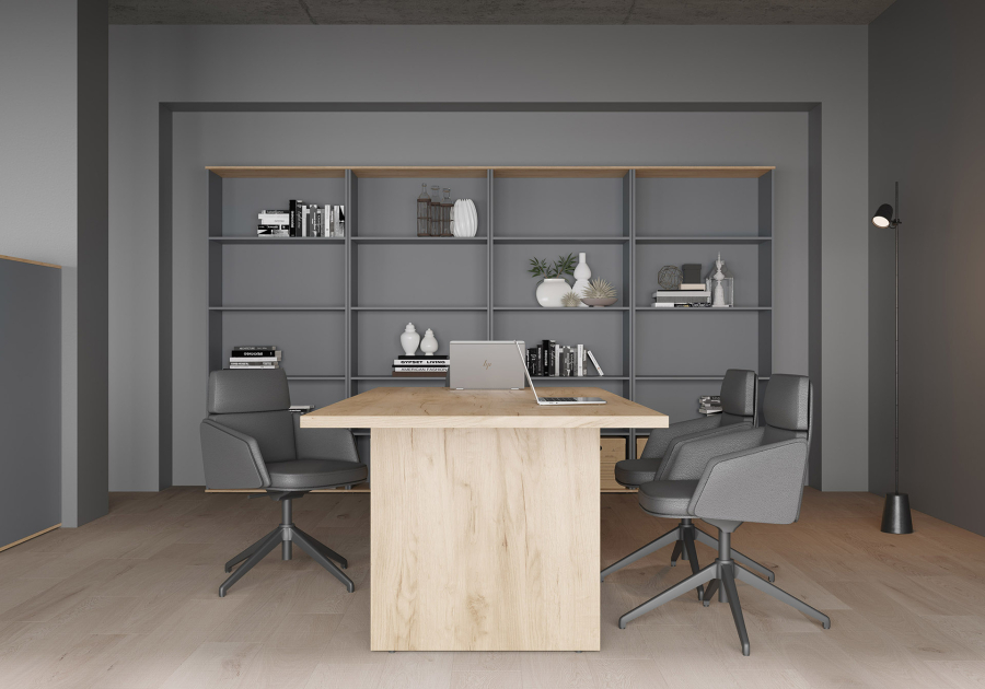 Стол письменный на опорной креденции Zion Light 200x205x75 дуб крафт золотой
