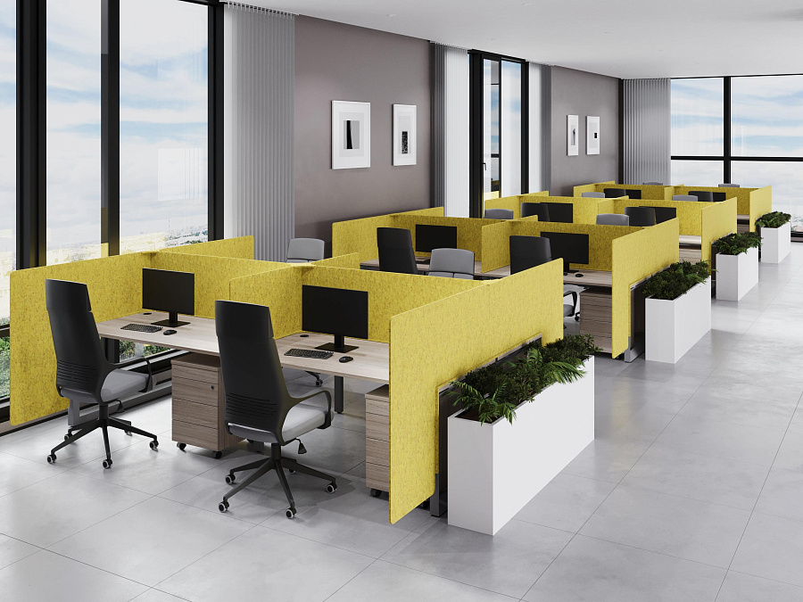 AcustiX предоставляет возможность изящного решения для создания личного пространства в офисе с бенч-компоновкой. Наша специальная система экранов с легкостью трансформирует множество рабочих столов в изолированные зоны, обеспечивая комфорт и конфиденциальность. Выбирайте свой вариант исполнения: от компактных, органично продолжающих линию столешницы, до полноразмерных конструкций, которые надежно защитят ваше рабочее место.