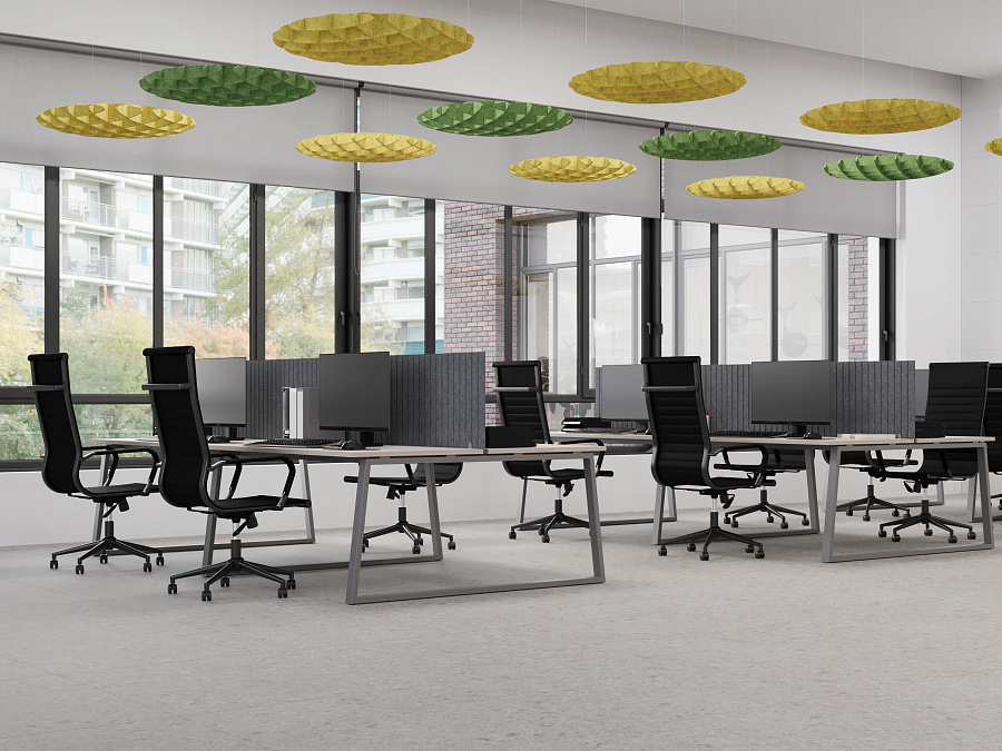 Потолок играет ключевую роль в создании идеальных акустических условий в пространстве. Использование инновационных подвесных потолочных систем AcustiX позволяет достигнуть заметного уменьшения шума в помещении благодаря войлочному материалу, который служит эффективным барьером для звуковых волн.