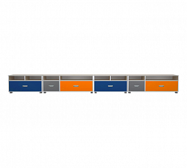 Данная модель представляет собой комплект двух модульных тумб. Они изготавливаются из надежной ЛДСП, которая прослужит долгое время.