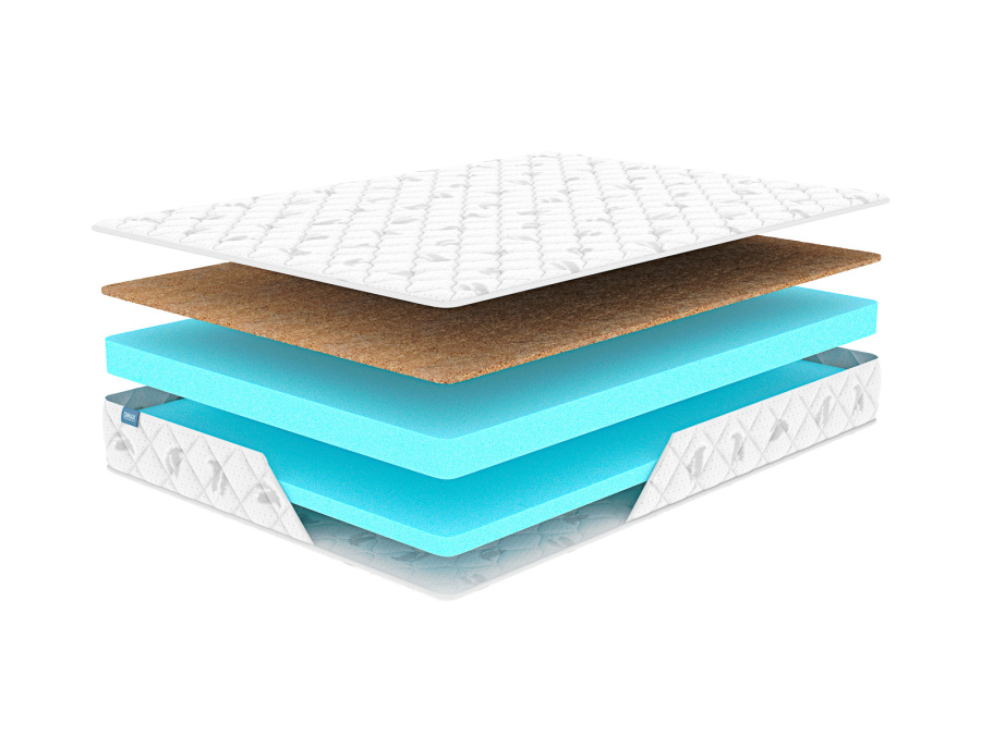 Двусторонний матрас! Основа матраса – эластичная и упругая пена, которая и создает оптимальные условия для поддержки позвоночника в правильном положении, а лист из кокосовой койры придаст матрасу дополнительную жесткость одной из сторон, отличный вариант для тех, кто не может определиться с жесткостью.