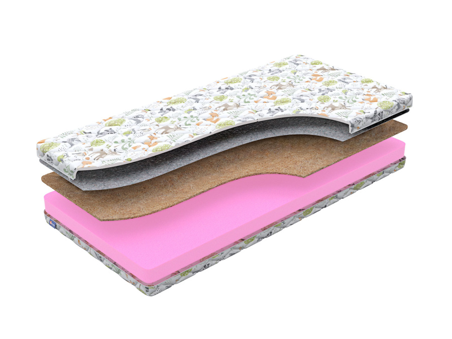 Одна из сторон жесткая, благодаря слою природного кокоса. Кокос придает необходимую упругость и наделяет спальную поверхность ортопедическими свойствами.