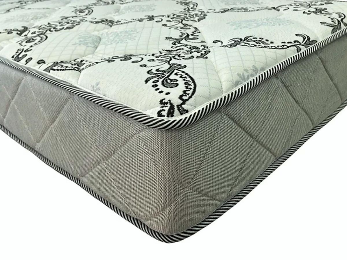 Чехол без молнии выполнен из трикотажной ткани (100% полиэстер, 230 гр./м2, простегана на 200гр. холлкона+0,8 ППУ). Изысканный узор в сочетании с объемной формой стежки и увеличенного количества наполнителя в чехле, придают матрасу неповторимый богатый вид и безупречно комфортные характеристики. Стильный бурлет выполнен из мебельной рогожки и простеган на 0,8 ППУ модным ромбовидным рисунком.Высота матраса - 12 см.