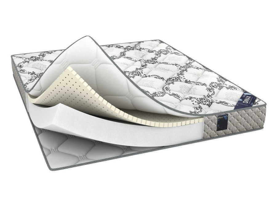 Чехол без молнии выполнен из трикотажной ткани (100% полиэстер, 230 гр./м2, простегана на 200гр. холлкона+0,8 ППУ). Изысканный узор в сочетании с объемной формой стежки и увеличенного количества наполнителя в чехле, придают матрасу неповторимый богатый вид и безупречно комфортные характеристики. Стильный бурлет выполнен из мебельной рогожки и простеган на 0,8 ППУ модным ромбовидным рисунком.Высота матраса - 18 см.