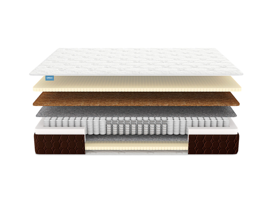 Между описанными выше слоями в центре матраса скрыт сдвоенный пружинный блок. Усилен он благодаря двойным пружинам, установленных по всей площади модели. Такие элементы независимы и способные выдерживать большие нагрузки до 170 кг на спальное место. Изделие показывает хорошую работу в парах, где есть существенная разница в весе. Автономная работа каждой из пружин даёт качественную ортопедическую поддержку.