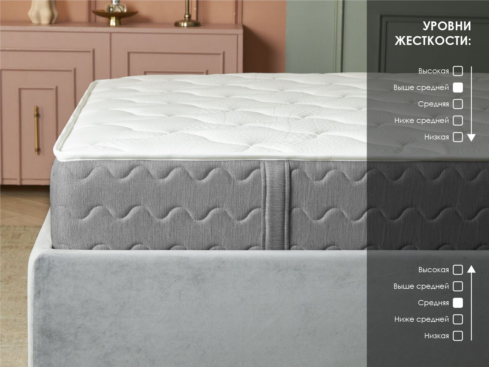 В основе матраса установлен блок пружин S1000. Спальное место вмещает не менее 1000 независимых спиралей, которые аккуратно точечно подстраиваются под линии тела. Система способствует естественной и правильной разгрузке спины, она стабильно поддерживает тело в физиологичном положении.