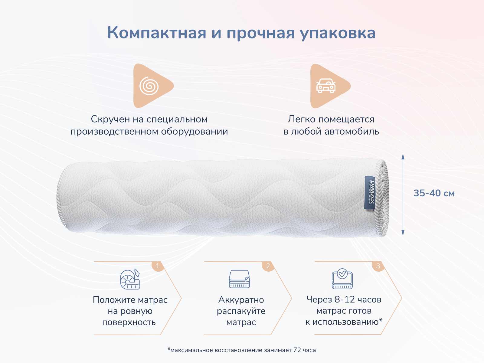 Компактный массажный матрас Relmas Light 3Zone, двусторонний и соответствует уровню жёсткости - мягкий.