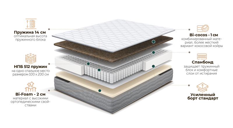 | Наполнение | Блок независимых пружин, Спанбонд |