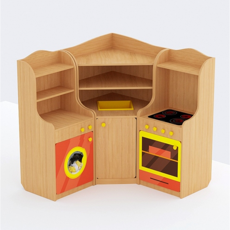 Полностью имитирующая «взрослые» интерьеры обилием ящиков, шкафчиков, полочек и иных аксессуаров, игровая мебель кухня «Алёнушка» для детского сада является идеальным местом для приготовления еды для кукол и мытья игрушечной посуды и займет своё место в игровой комнате любого детского сада.