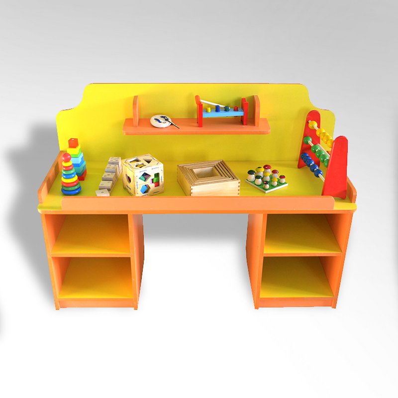 Этот функциональный стол для детского сада имеет и иное назначение. Помимо столь серьезной психологической нагрузки, еще одна функциональная особенность стола помогает детям чередовать интеллектуальные и физические упражнения. Между тумбами стола дети могут ползать, прятаться, тем самым быстро переключаясь с одной игры на другую.