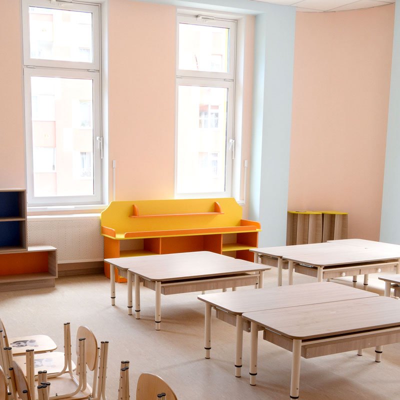Этот функциональный стол для детского сада имеет и иное назначение. Помимо столь серьезной психологической нагрузки, еще одна функциональная особенность стола помогает детям чередовать интеллектуальные и физические упражнения. Между тумбами стола дети могут ползать, прятаться, тем самым быстро переключаясь с одной игры на другую.