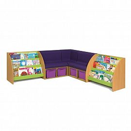 Это диван можно использовать отдельно, и он также является частью ассортимента, который включает в себя угловое сиденье и дисплей с книжками с картинками.